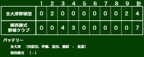 | 9月16日 | 岐阜硬式野球倶楽部 | ● | 0-5 |